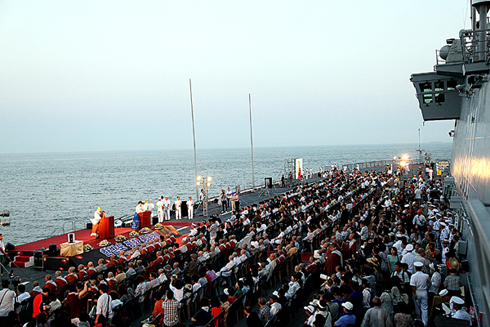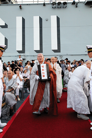 µ¶µµÇÔ¿¡¼ ÇÔÀå ÃÊûÀ¸·Î ¿¸° Àú³á ¸¸Âù¿¡ À̾î ÁÖ¿ä ³»¿ÜºóÀÌ º» Çà»çÀåÀ¸·Î ÀÔÀåÇÏ¸é¼ µ¶µµÇÔÀÌ ÈûÂù °íµ¿¼Ò¸®¸¦ ¿ï¸®¸ç ÃâÇ×Çß´Ù. ÀÛÀü»ç·ÉºÎ¸¦ ¶°³ µ¶µµÇÔÀº 1½Ã°£¿© ¼øÇ×À» Çϸç ÇØ¿î´ë ¾Õ¹Ù´Ù¿¡ À̸£·¶´Ù. ¼±»ó¿¡¼´Â °³È¸¼±¾ð¿¡ À̾î È£±¹¼±¿¿¡ ´ëÇÑ Ã߸ðÀǽÄ, ±×¸®°í ÆòÈ±â¿øÇà»ç°¡ ¿·È´Ù. ¼öºÒ½º´ÔÀº ¡°±¹¹ÎÀÌ ½Ç·ÂÀÌ ÀÖ¾î¾ß ±¹°¡°¡ À¯ÁöµÇ´Â °ÍÀÌ´Ù. ±¹¹ÎµéÀÇ ÆòÈ¿¡ ´ëÇÑ ¿°¿øÀÌ ¸ðÀ϶§ ÇѹݵµÀÇ ÆòÈÅëÀϰú Ç×±¸ÀûÀÎ ¼¼°èÆòȰ¡ ÀÌ·ïÁú ¼ö ÀÖ´Ù¡±°í ¸»Çß´Ù.