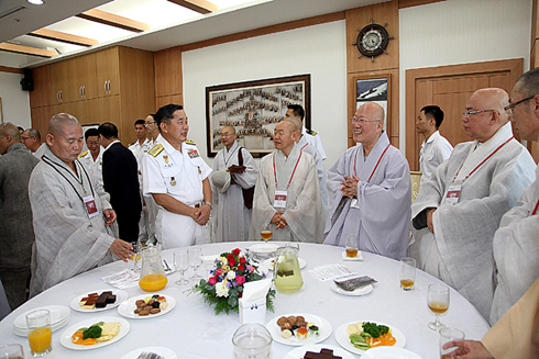 Á¤È£¼· ÇØ±ºÀÛÀü»ç·É°ü°ú ½º´ÔµéÀÌ Â÷´ãÀ» ³ª´©°í ÀÖ´Ù.